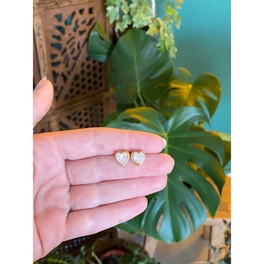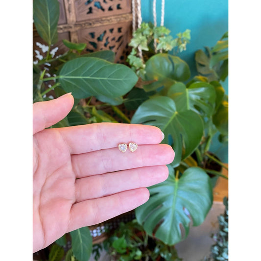 Solid 14k Yellow Gold Clear Cubic Zirconia Heart Stud Earrings