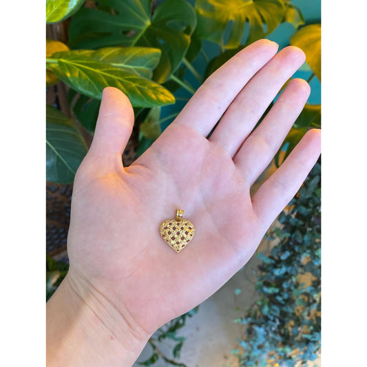 Solid 14k Yellow Gold Diamond Cut Heart Charm