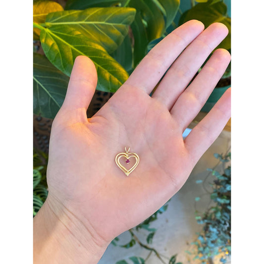 Vintage Solid 14k Yellow Gold Ruby Open Heart Charm