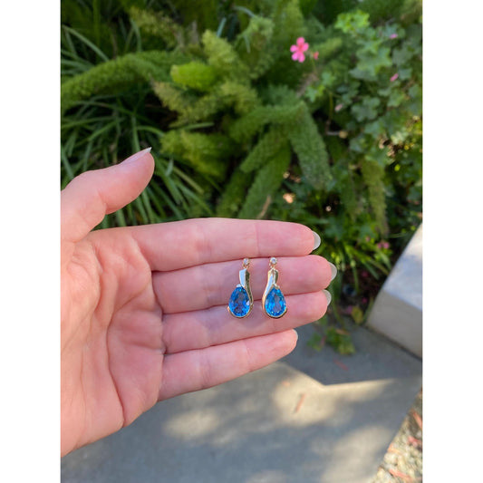 Vintage Solid 14k Yellow Gold Topaz Dangle Earrings