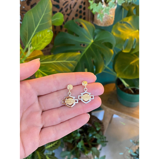 Vintage Solid Platinum & 14k Yellow Gold Harley Davidson Dangle Stud Earrings