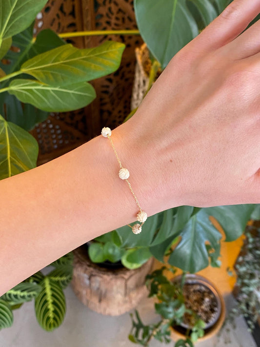 Vintage Solid 14k Yellow Gold Carved Stone Dainty Chain Bracelet - 7.25 inches