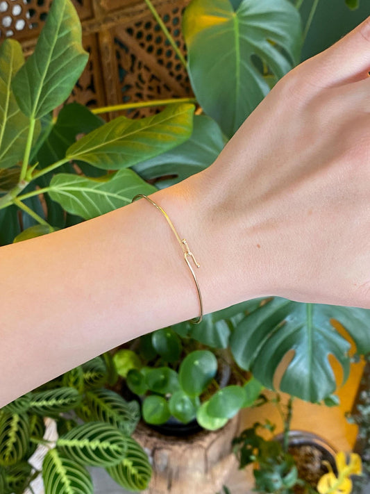 Vintage Solid 14k Yellow Gold Thin Wire Bangle Bracelet