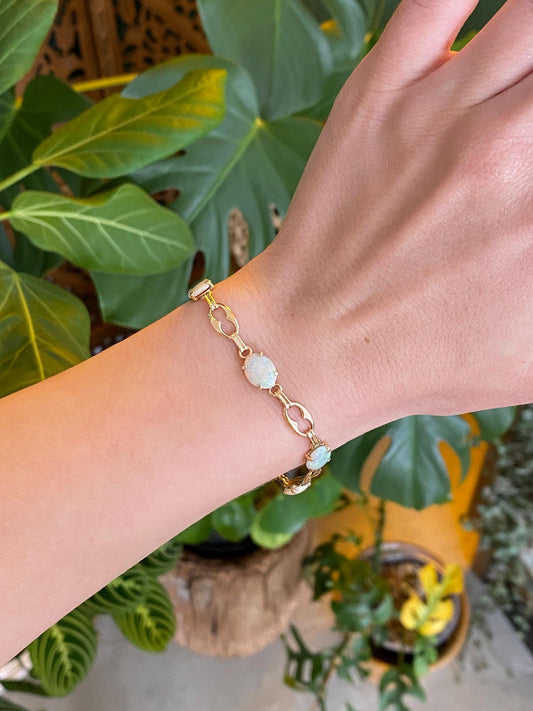 Vintage Solid 14k Yellow Gold Opal Link Bracelet - 7 inches