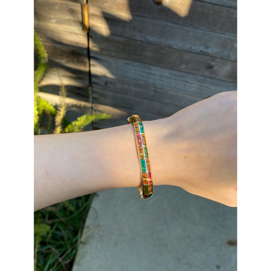 Vintage 14k Yellow Gold Colored Enamel Geometric Bangle Bracelet