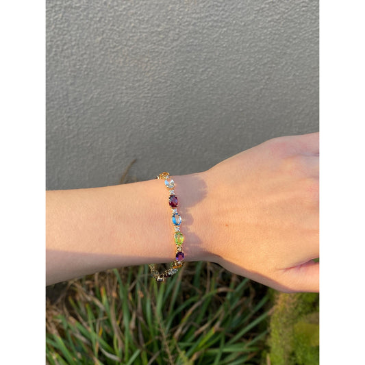Vintage Solid 14k Yellow Gold Amethyst Diamond Citrine Topaz Garnet Peridot Quartz Link Bracelet - 8 inches