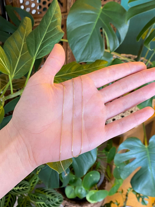 Vintage Solid 14k Yellow Gold Dainty Box Chain Necklace - 18 inches