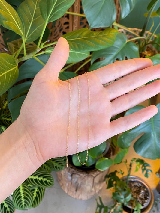Vintage Solid 14k Yellow Gold Dainty Cable Chain Necklace - 18 inches