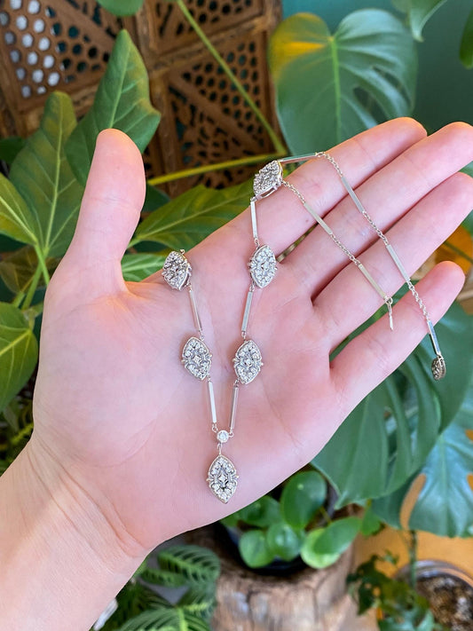Vintage Solid 14k White Gold Diamond Bar Link Cable Chain Necklace - 16 inches