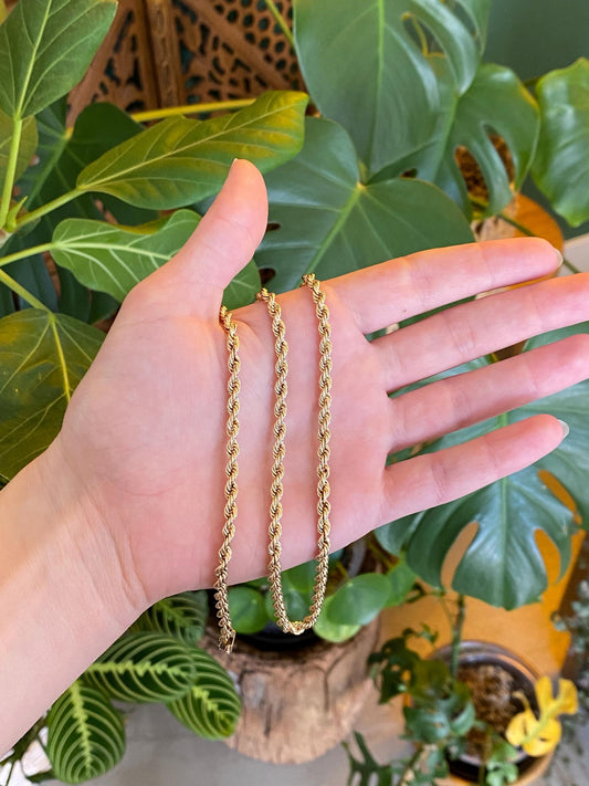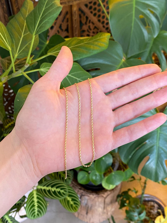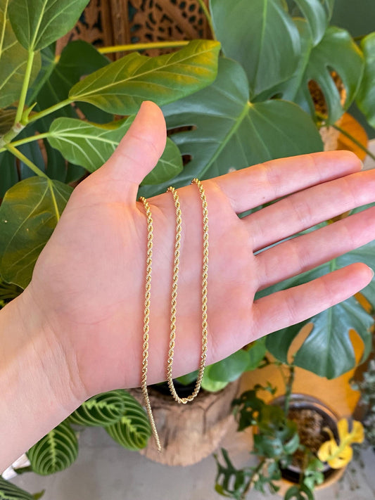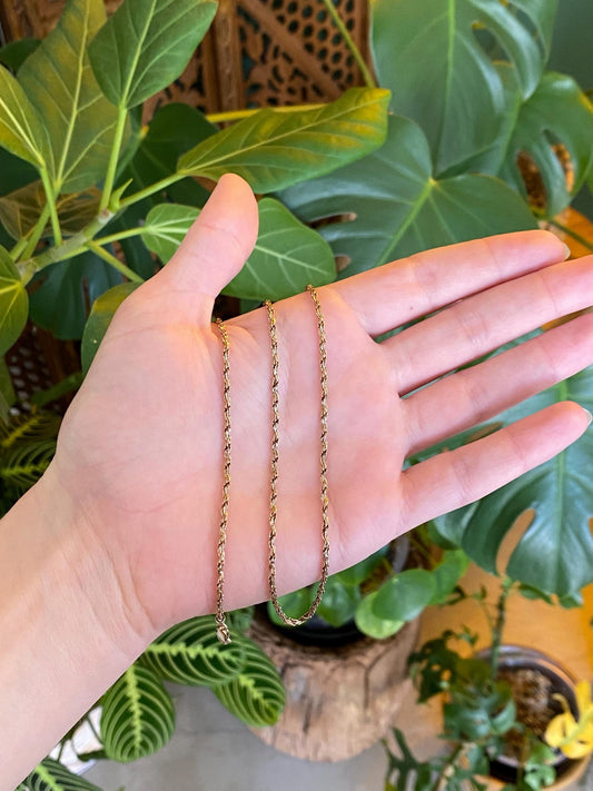 Vintage Solid 8k Yellow Gold Slim Rope Chain Necklace - 19.25 inches