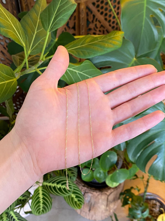 Vintage Solid 14k Yellow Gold Long Dainty Twist Chain Necklace - 28.75 inches