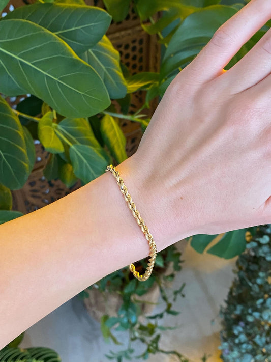 Vintage Solid 14k Yellow Gold Silk Rope Chain Bracelet - 8 inches