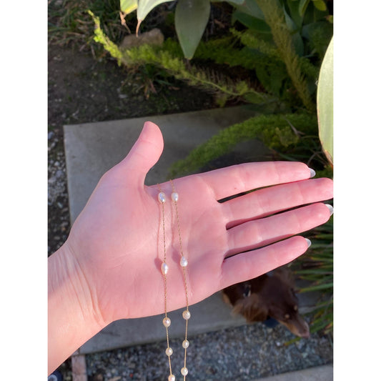 Vintage Solid 14k Yellow Gold Pearl Dainty Chain Necklace - 31 inches