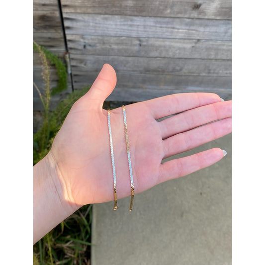 Vintage Solid 14k Yellow Gold Slim Herringbone Chain Necklace - 24 inches