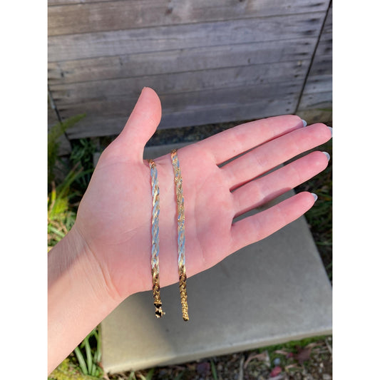Vintage Solid 14k Yellow Gold Braided Flat Chain Necklace - 18 inches