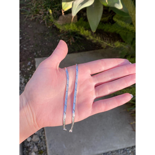 Vintage Solid 14k White Gold Diamond Cut Herringbone Chain Necklace - 20 inches