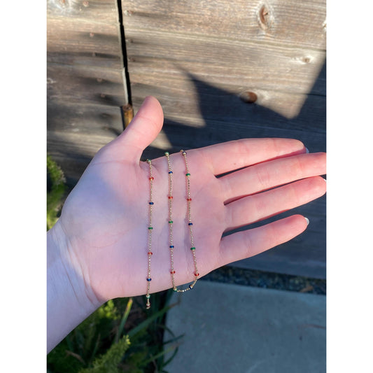 Vintage Solid 10k Yellow Gold Colored Enamel Ball Chain Anklet - 9.5 inches