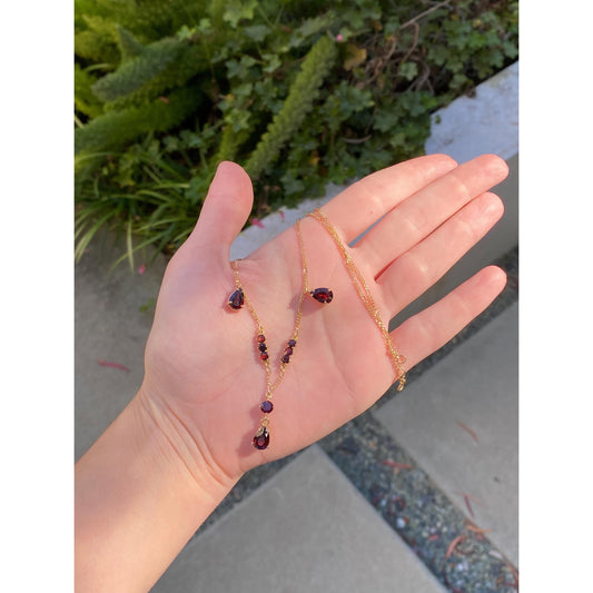 Vintage Solid 18k Yellow Gold Garnet Figaro Chain Necklace - 16.5 inches