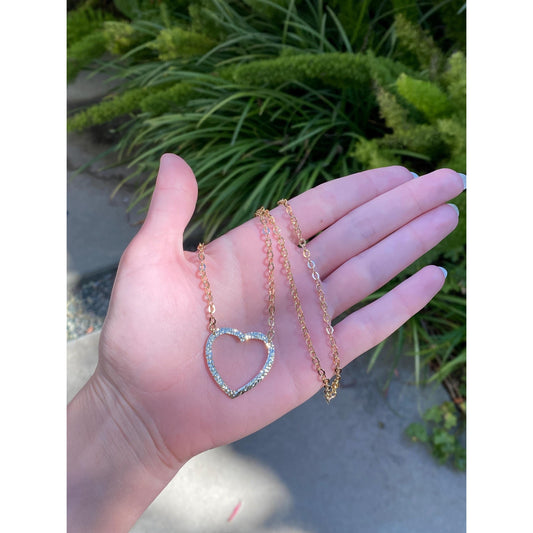 Vintage Solid 14k Yellow Gold Diamond Heart Hands Flat Chain Necklace - 16.75 inches