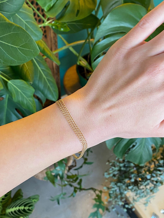 Vintage Solid 14k Yellow Gold Triple Strand Curb Chain Bracelet - 7 inches