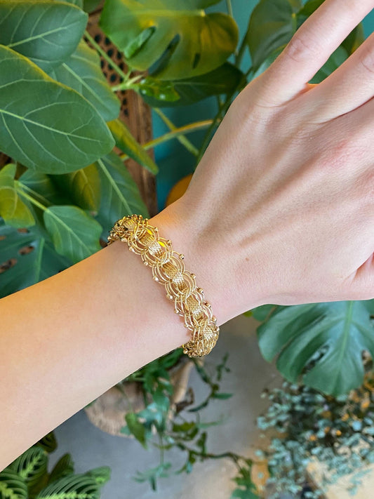 Vintage Solid 14k Yellow Gold Woven Fancy Chain Bracelet - 7.5 inches