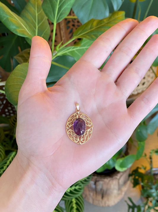 Vintage Solid 14k Yellow Gold Amethyst Cabochon Charm