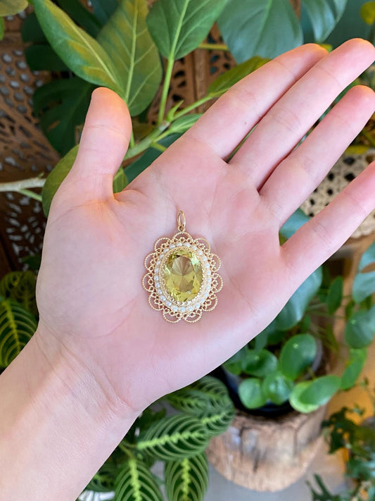 Vintage Solid 14k Yellow Gold Pearl Halo Lemon Quartz Charm