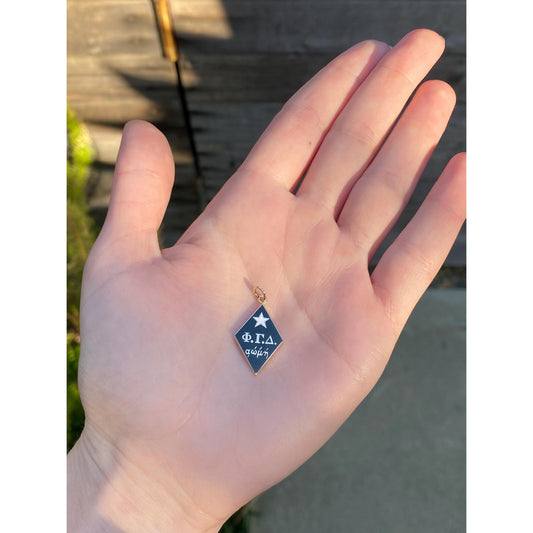 Vintage Solid 10k Yellow Gold Black Enamel Fraternity Charm