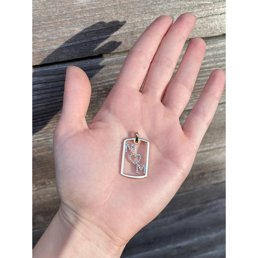 Solid 14k Yellow Gold Diamond 'Mom' Charm