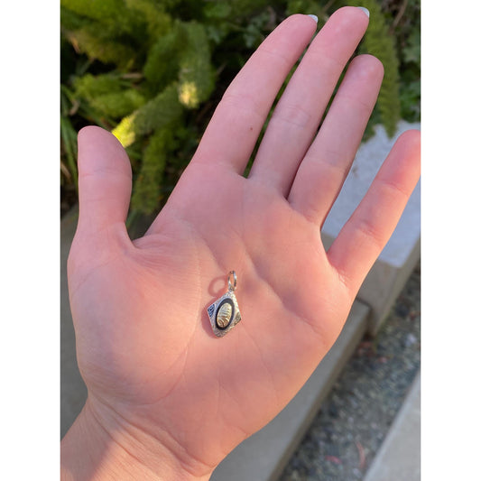 Vintage Solid 18k Yellow Gold Wire Wrapped Tigers Eye Charm