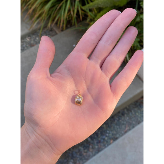 Vintage Solid 18k Yellow Gold Carved Scarab Charm