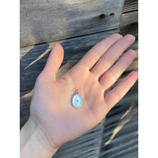 Vintage Solid 14k Yellow & White Gold Diamond MOP Oval Cufflink Conversion Charm