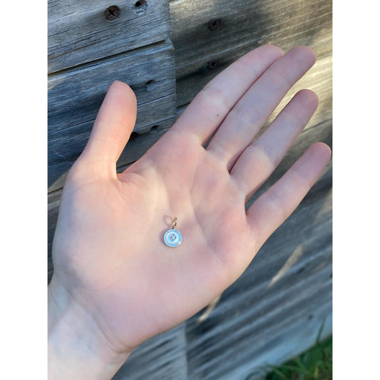 Vintage Solid 14k Yellow & White Gold Diamond MOP Round Cufflink Conversion Charm