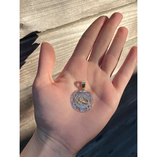 Solid 14k White Gold Diamond Opal Inlay Slide Charm