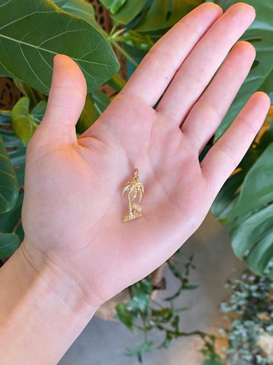 Vintage Solid 14k Yellow Gold Florida Palm Tree Charm