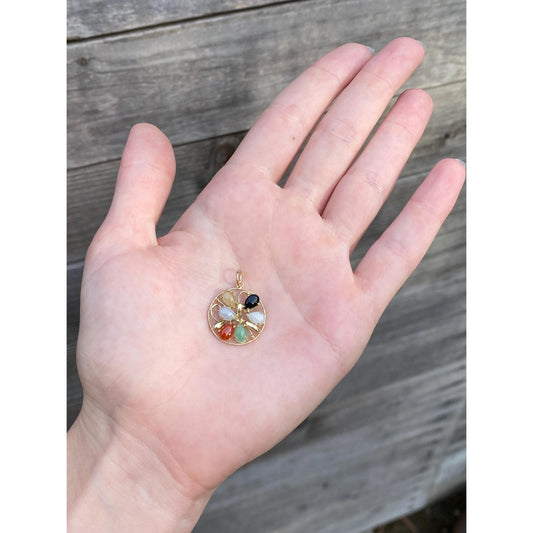 Vintage Solid 14k Yellow Gold Colored Jade & Onyx Circle Charm