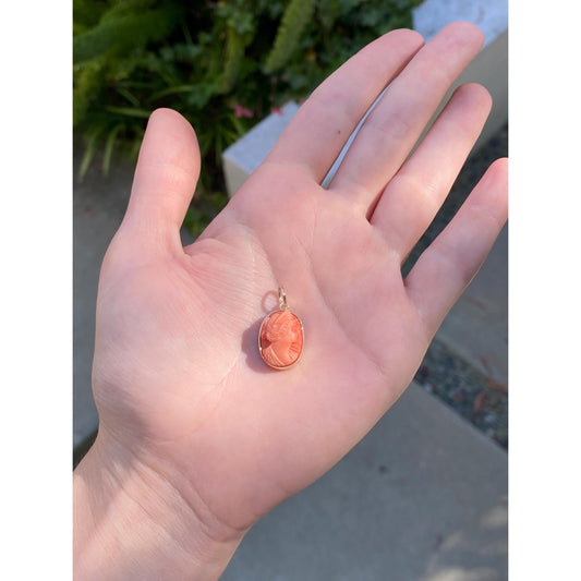 Vintage Solid 10k Yellow Gold Coral Cameo Stick Pin Conversion Charm
