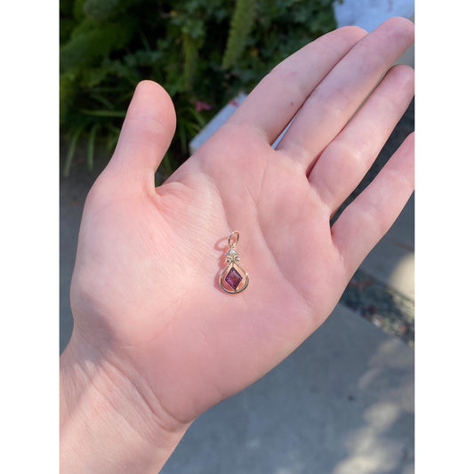 Vintage Solid 10k Yellow Gold Red Cubic Zirconia Knot Stick Pin Conversion Charm