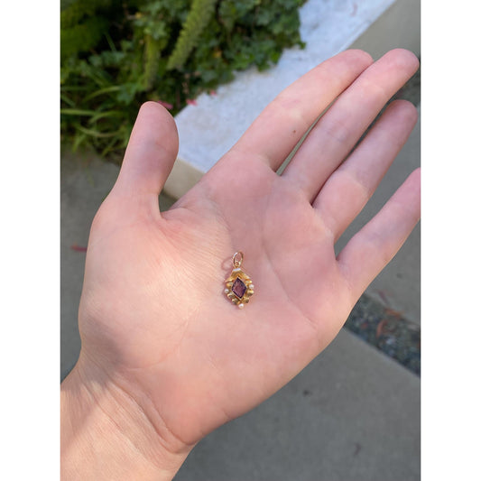 Vintage Solid 14k Yellow Gold Purple Cubic Zirconia Seed Pearl Stick Pin Conversion Charm