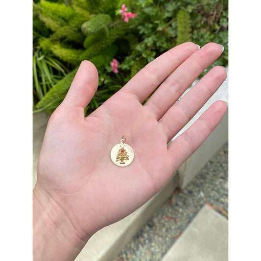 Vintage Solid 14k Yellow Gold Colored Stone Christmas Tree Charm