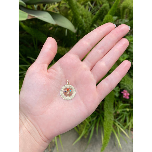 Vintage Solid 14k Yellow Gold Enamel Christmas Wreath Charm