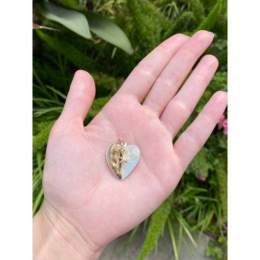 Vintage Solid 14k Yellow Gold Diamond Heart Charm