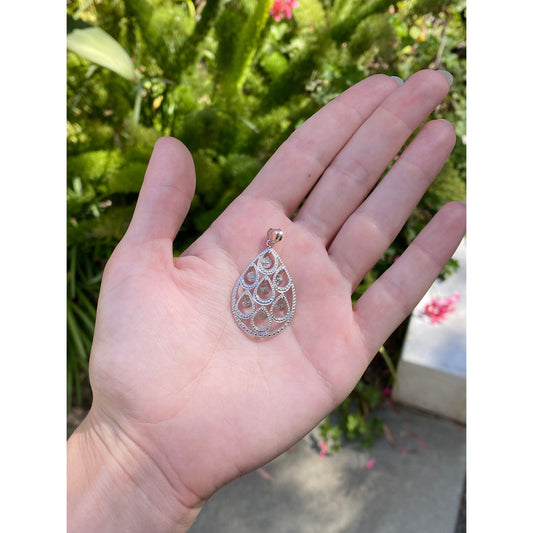 Vintage Solid 14k White Gold Teardrop Fringe Charm