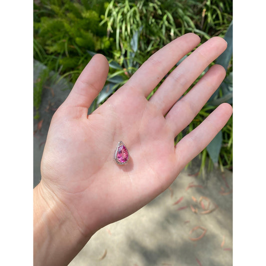 Vintage Solid 10k White Gold Diamond Pink Sapphire Teardrop Slide Charm
