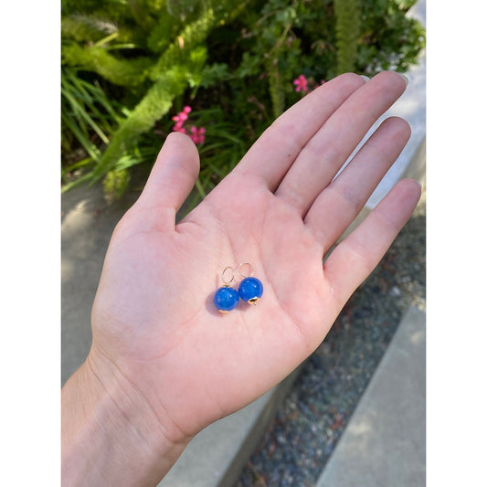Vintage 14k Yellow Gold Blue Glass Hoop Charms