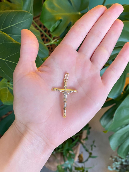 Vintage 14k White & Yellow Gold Crucifix Charm