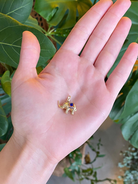 Vintage 14k Yellow Gold Enamel Elephant Charm