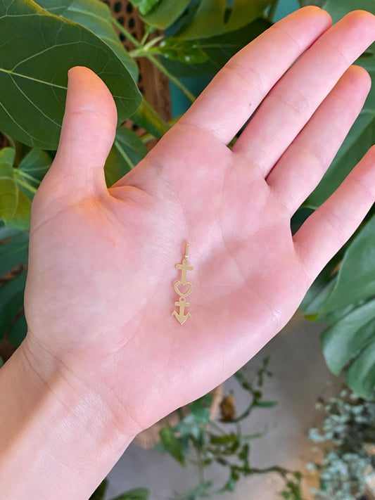 Vintage Solid 14k Yellow Gold Anchor Cross Heart Charm