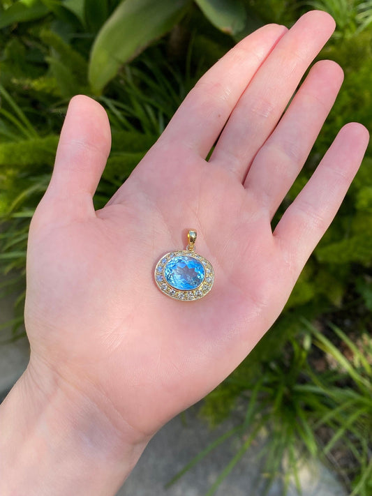 Solid 14k Yellow Gold Little Topaz & Diamond Charm