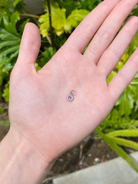 Vintage Solid 14k White Gold Little Pink Tourmaline & Diamond Charm